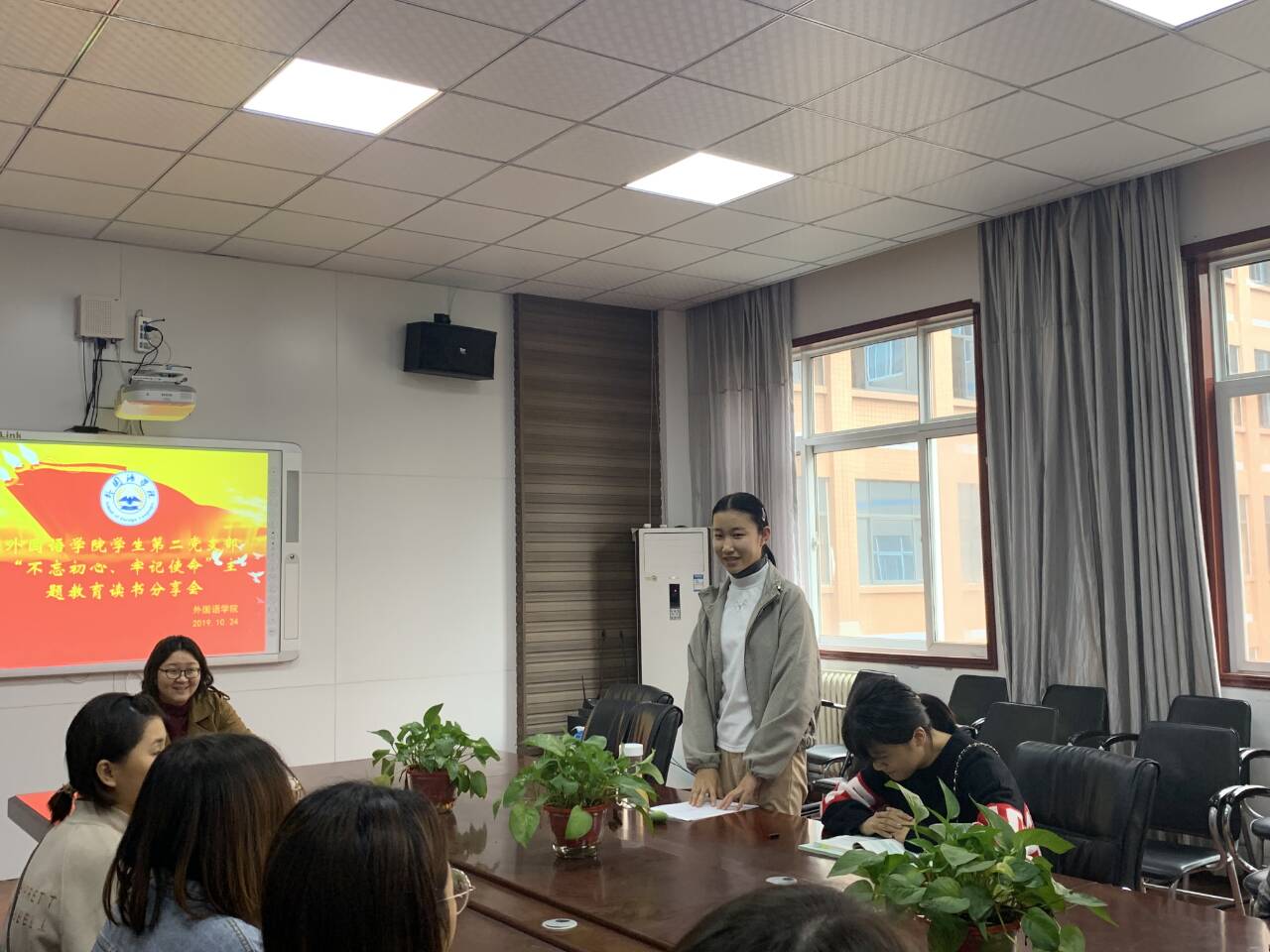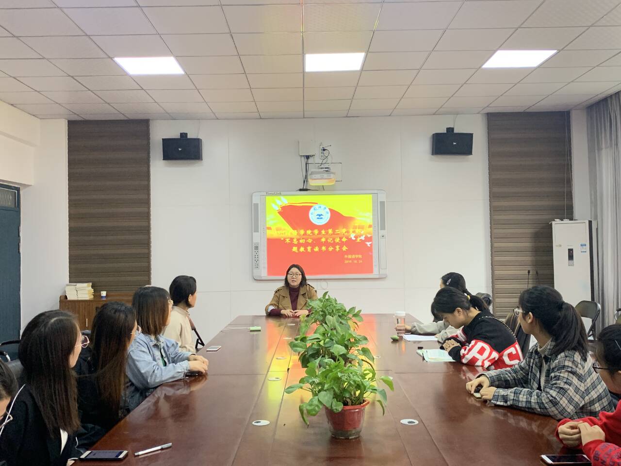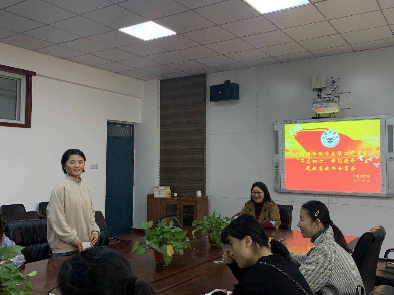 (通讯员:田果果)根据学校“不忘初心、牢记使命”主题教育工作安排,为进一步坚定学生党员们的理想信念,明确自身的责任和使命,10月24日下午,欧美精品一区二区学生第二党支部在1号楼306会议室举行“不忘初心、牢记使命”主题教育读书分享会,支部全体学生党员参加,支部书记田果果负责主持。