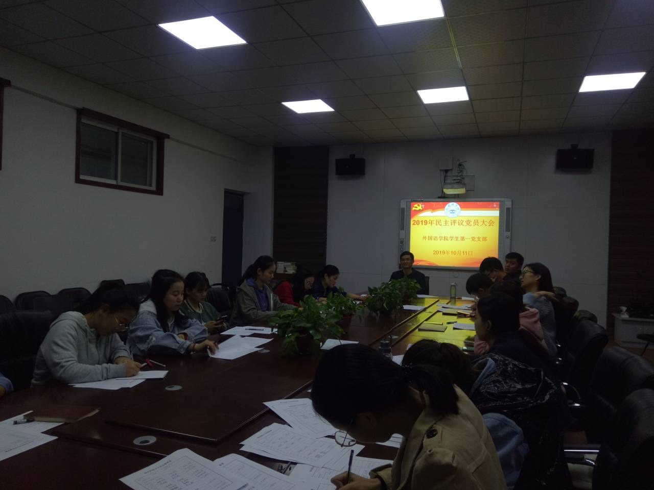 (学生第一党支部党建工作述职及民主评议党员现场)