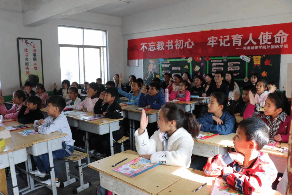 本次活动的主题是“不忘教书初心,牢记育人使命”。学院志愿服务队走近新庄第四小学四年级的课堂,向学校英语教师进行小学英语示范课展示,对班级学生发放学习用品。课后,服务队员向学校赠送了学习书籍并和学校领导、英语教师就如何提高小学英语课堂教学效果开展讨论交流,讨论交流时,部分英语教师反映备课时对课程配套的互联网资源和课改信息查阅不便,服务队员与学校英语教师现场结对帮扶并创建微信教学帮扶群,方便随时交流和分享英语教学资源。
