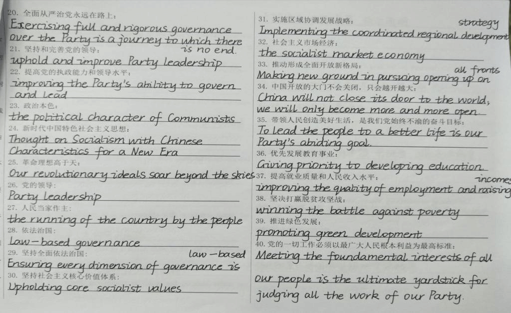 此次翻译大赛试卷分为两部分:第一部分是汉译英,第二部分是英译汉,一共50道题。比赛开始之前,学生党员根据参考资料认真复习备考,力求准确掌握每一个知识点。比赛时,同学们时而奋笔疾书,时而埋头苦思,态度认真端正。比赛历时一个半小时,结束之后,老师们投入到紧张的阅卷工作中去。