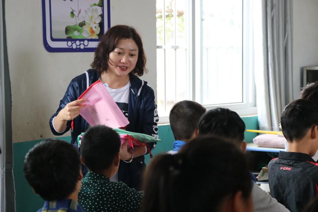 (张凤琴发放学习用品)
