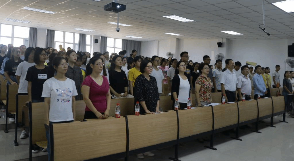 入学典礼在庄严肃穆的国歌声中拉开序幕,开启大一新生思政教育第一课。首先秦平新致欢迎词,他介绍了学院的同传实验室、计算机辅助翻译实验室、语音实验室等硬件设施,英语和翻译两个专业教研室,三个公共外语教研室,学院历年势头良好的考研和就业形势。最后他从“做人能让人感动,做事能让人怀念,心态要谦虚、乐观、宽容”三个方面寄语大一全体新生,祝愿他们的理想在外语铸就,梦想在外语起飞。