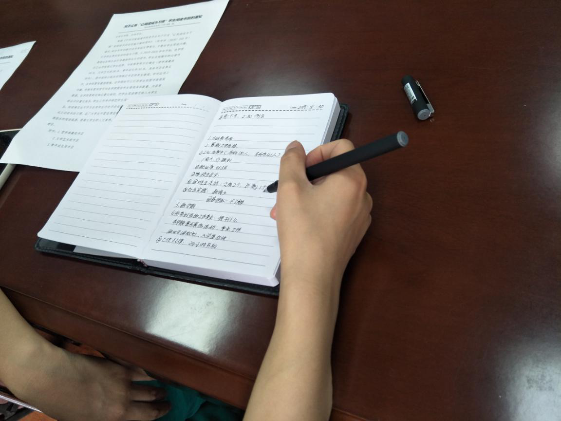 (辅导员认真记笔记)