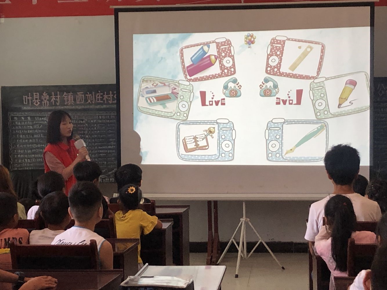 活动伊始,志愿者们首先进行自我介绍并与小朋友们进行友好交流。志愿者教小朋友们唱歌、绘画,弥补文娱活动的不足;给小朋友们辅导暑假作业,切实解决学生的学业负担。并且叮嘱小朋友不能单独去河流游泳,出门需要结伴而行。