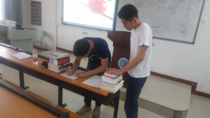 活动开始,首先由学生代表讲话,表达对毕业生的美好祝福,希望他们在以后的学习工作中能够保持乐观积极的生活态度,努力奋进新时代。随后大四同学们把自己带来的书籍放在捐赠处,并在书中留下对学弟学妹们的祝福语,寄予美好祝愿。活动最后,学生会成员向现场参与捐赠图书的同学表达了深深的感谢。