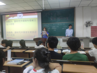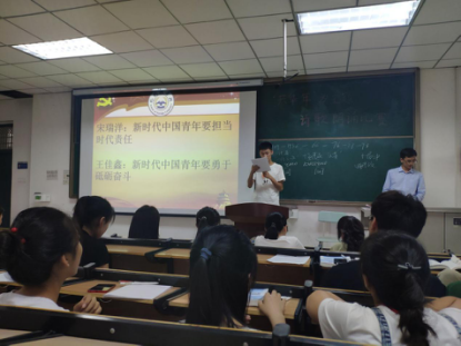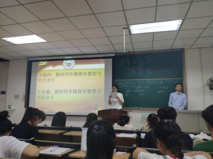 大一心理委员作为演讲者,演讲的主题分别是:杨勤杰:新时代中国青年要树立远大理想;冯微微:新时代中国青年要热爱伟大祖国;韩子奥:新时代中国青年要担当时代责任;王佳鑫:新时代中国青年要勇于砥砺奋斗。树立为人民服务的远大理想,怀抱热爱伟大祖国的满腔热情,勇于担当时代赋予的责任,敢于为国家和民族砥砺奋斗,有助于新时代青年克服心理健康危机,加强心理健康的自我教育。