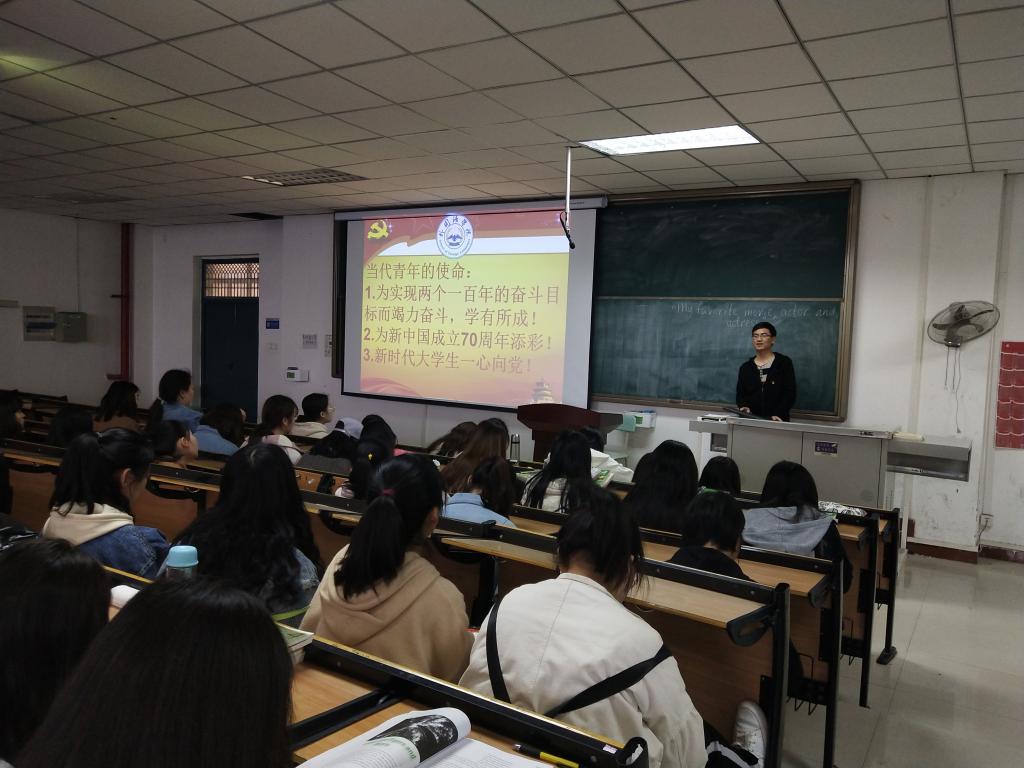 (通讯员 赵星辰)为庆祝新中国成立70周年,在新时代大学生中普及红色历史文化,弘扬红色历史传统,传承红色基因,激发新时代学子的奋斗热情,4月10日欧美精品一区二区在一号教学楼326教室召开“庆祝新中国成立70周年”主题班会,辅导员赵星辰老师主持,大二全体学生参加。