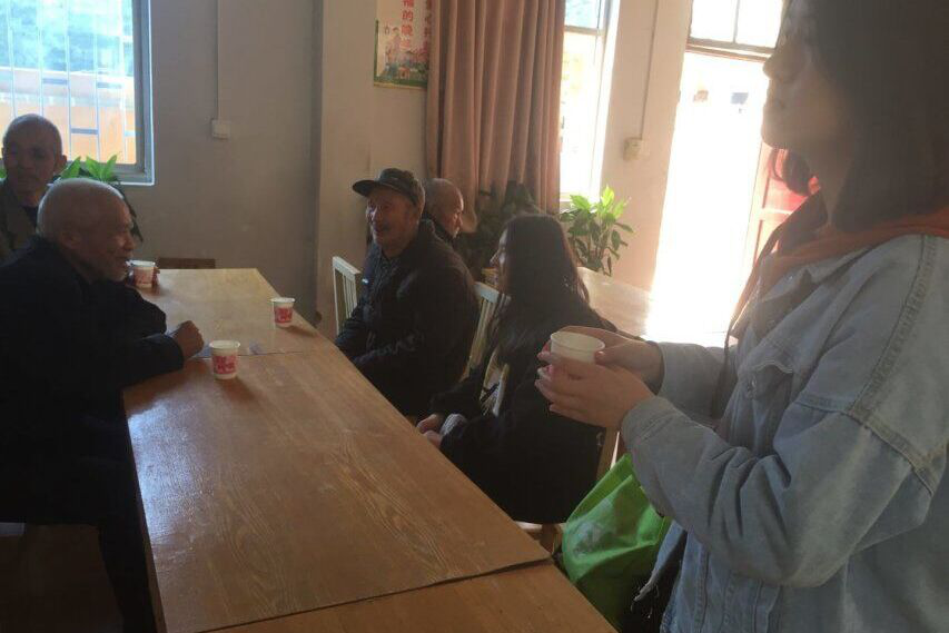 和老人交流