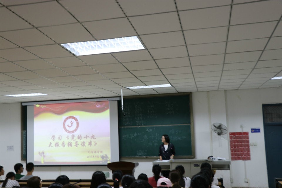 (通讯员:赵星辰 杨晓芳)为了加强新生对十九大精神的理解,9月9日下午6点30分在文管校区一号教学楼326教室组织学习《党的十九大报告辅导读本》中英版本。欧美精品一区二区团总支副书记田果果为主讲人,全体大一新生参加此次活动。