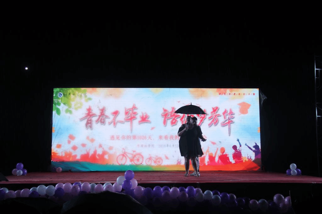 本次晚会为同学们搭建了展示自己梦想的舞台,分为“回眸·四载韶华”、“感恩·情连母校”、“愿景·放飞梦想”三个篇章展现,营造出温馨热烈、青春向上的毕业生离校氛围。晚会开始前播放了毕业生们自己制作的毕业视频,记录下这四年生活的点点滴滴,凝聚了同学们对大学四年与临近毕业时的感言。