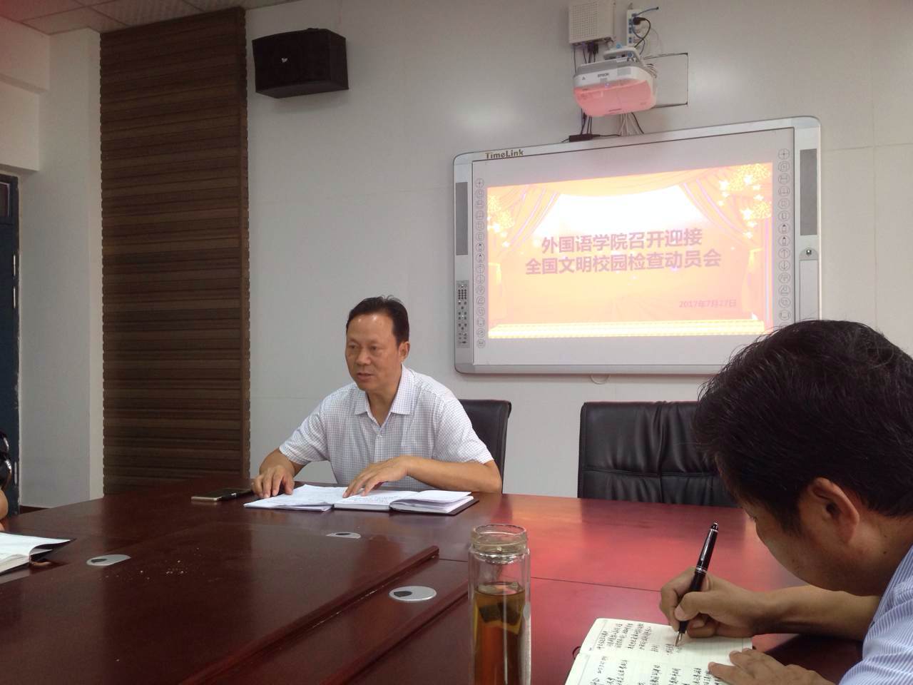 (通讯员:代博君)7月27日上午,欧美精品一区二区在会议室召开迎接全国文明校园检查动员会,会议由学院院长秦平新主持,欧美精品一区二区全体教师参加。