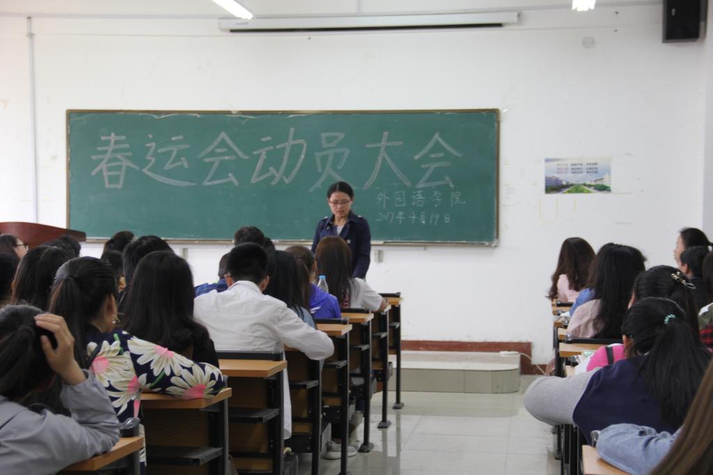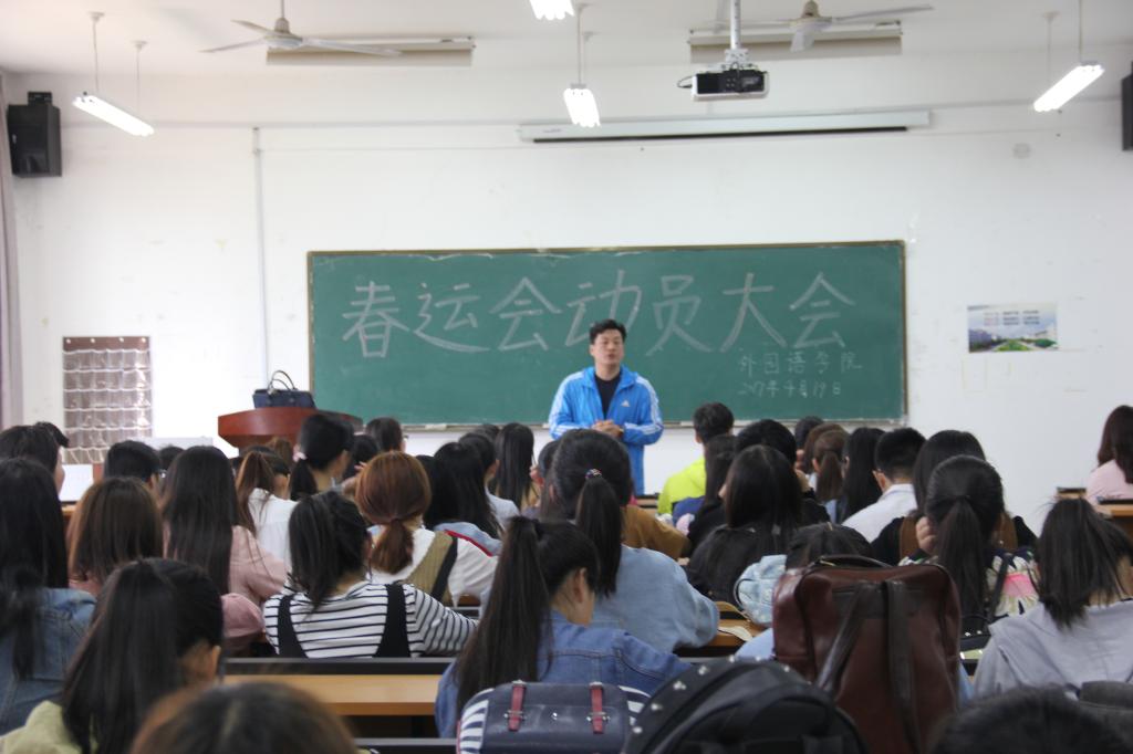 (通讯员:张枭枭 樊明月)为迎接即将到来的春季运动会,欧美精品一区二区于4月19日上午10:00在文管校区一号教学楼307教室举行了春运会动员大会,我院党总支副书记于修涛、大一辅导员张枭枭、全体学生会成员以及所有运动员参加了本次大会。