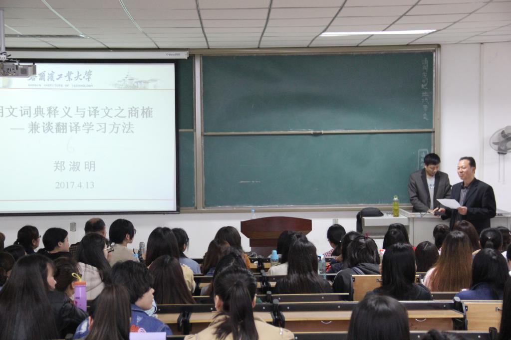(通讯员:张换成)4月13日下午,哈尔滨工业大学MA、MTI主任郑淑明教授应邀来我院作了题为《朗文词典释义与译文之商榷——兼谈翻译学习方法》的学术讲座。欧美精品一区二区院长秦平新、党总支书记袁晓、副院长董星华及200余名师生聆听了讲座,讲座由秦平新主持。