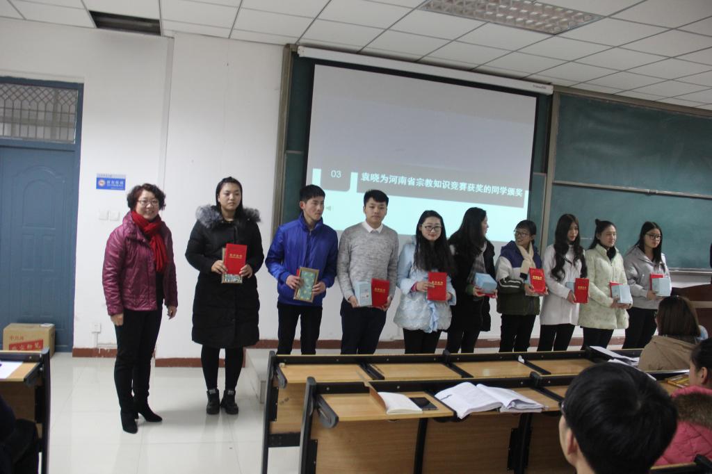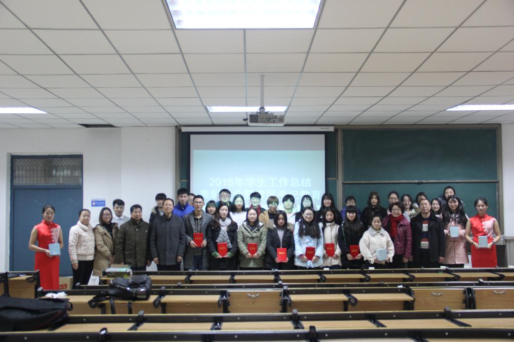 于修涛在大会上就2016年度学院工作进行总结,他指出,我院积极建立学生信息网络系统,完善奖助制度,保证了学生信息畅通,同时也对我院同学积极响应并参与各种比赛及活动提出表扬。田果果随后宣读获奖名单,并对接受表彰的同学表达祝贺,我院领导为获奖同学进行颁奖并合影留念,现场响起阵阵雷鸣般的掌声。秦平新又就考风考纪发表讲话,教育同学们要诚信考试,谆谆教诲让学生受益匪浅。大会在合影留念中圆满结束。