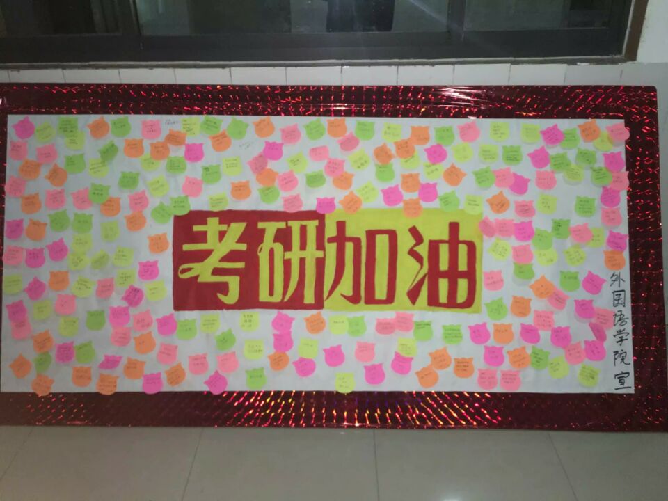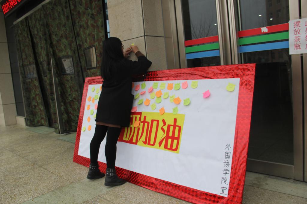 (通讯员:田果果 董慧景)为增强考研同学们的自信心,欧美精品一区二区于12月23日12点在文院蓝青园餐厅门口开展“一句话为考研加油”活动。