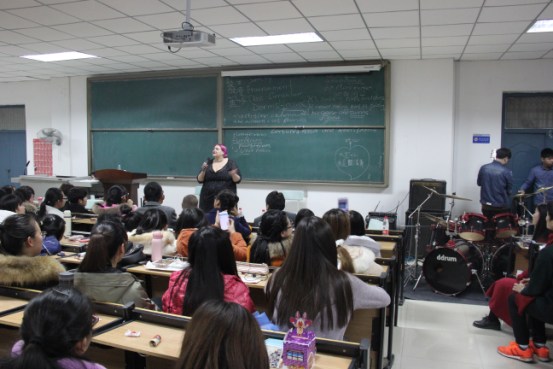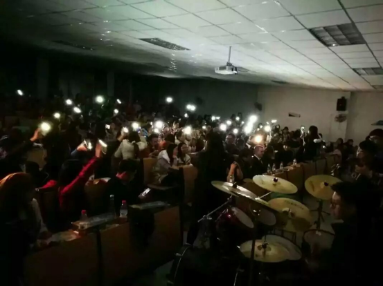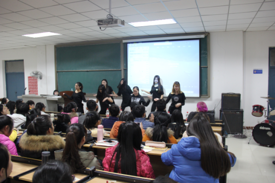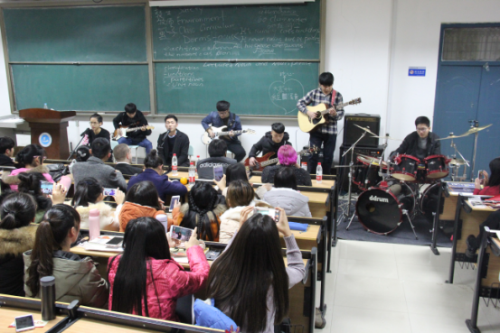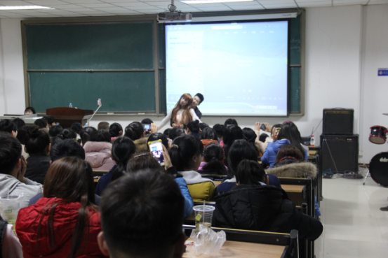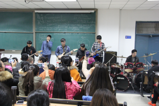 晚会以全英文为主,设计了许多精彩有趣的表演,舞蹈串烧、B-box和英文曲目歌唱作为暖场秀,主持人张瑞博(Rebecca)和汤睿(Charlie)活泼的主持风格也深得观众喜爱,不仅充分展示了专业特色,也点燃了现场观众的热情。晚会中也不乏精彩搞笑的节目,反串版《泰坦尼克号》和英文版《大话西游》话剧引得同学们笑声连连,掌声不断。期间外教Barbara的歌舞表演活泼可爱,赵军伟老师的日文歌曲演唱更将全场气氛推向高潮。复活乐队作为压轴出场,动感演唱让现场激情四射,同学们都纷纷打开手机闪光灯亮出一片“星星海”。晚会最后进行抽奖环节,幸运观众得到了外教精心准备的圣诞礼物。至此,晚会圆满落幕。
