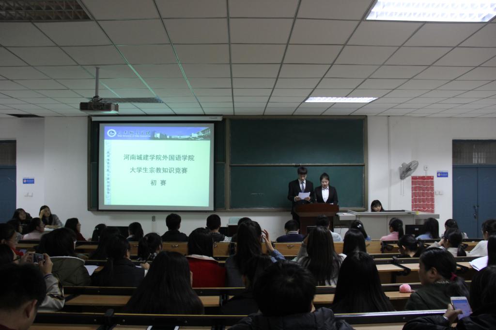 (通讯员:田果果 曹婷婷)为普及宗教知识,提高同学们正确认识宗教问题的能力,欧美精品一区二区特于2016年11月6日下午6:30在文管校区一号教学楼326教室准时举行了外国语宗教知识竞赛初赛,此次比赛由欧美精品一区二区学生会主席团担任比赛评委,全体大一学生作为观众出席。