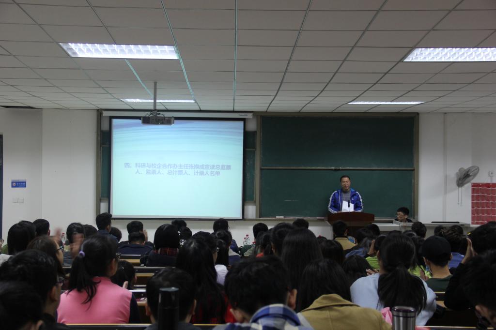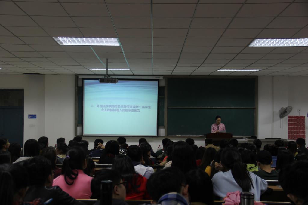 田果果老师宣读学生会主席团换届选举办法