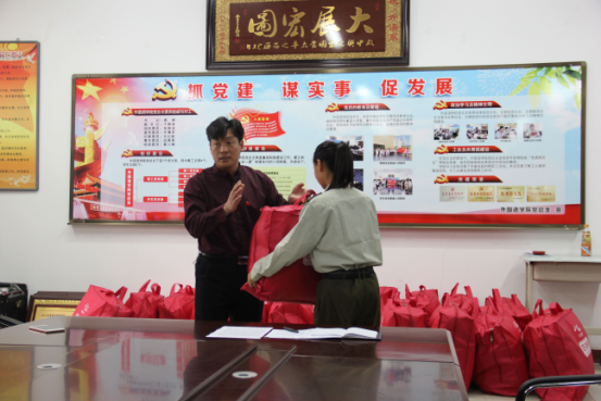 于修涛书记给学生发礼包