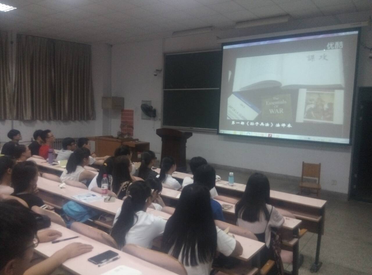 本次课程主要在于为新生讲授中国和外国军事思想、军事战略等课题。首先,老师提出了军事理论课上学生所要遵循的纪律和要求。随后从阅兵式展开,用生动形象的语言、清晰简明的事例,深情地向同学们讲述了中国人民艰苦卓绝、英勇抗战的光辉历史。期间,老师放了一段军事视频,让同学们对我国军事现状进行讨论。最后,老师旁征博引、深入浅出地为学员讲授国防知识。参训的新生虚心学习、认真记录,积极与教授互动,课堂气氛和谐融洽。最后,此次军事理论课在新生们激昂振奋的情绪中结束。