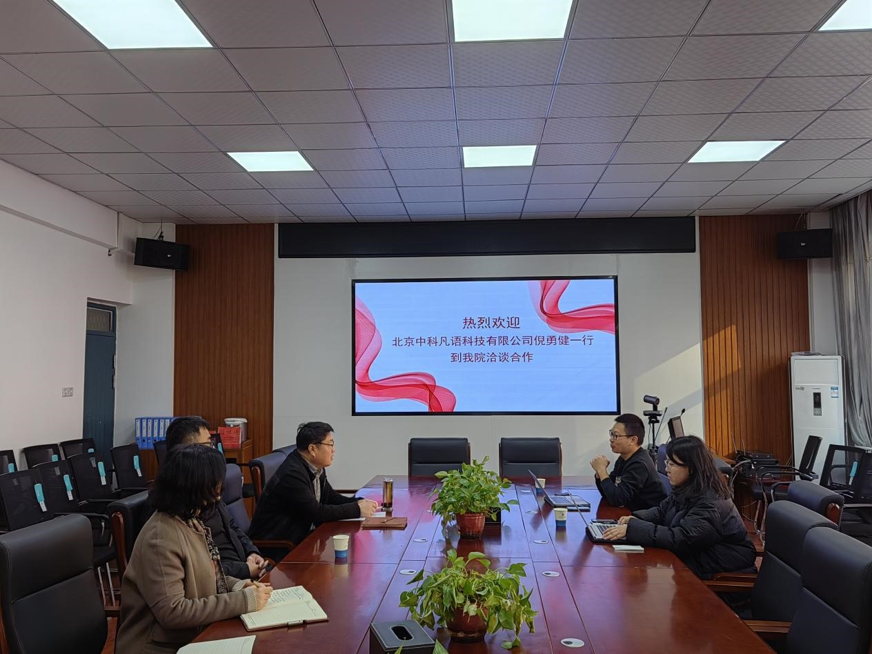 (通讯员 张湘雨)3月2日,北京中科凡语科技有限公司倪勇健一行和郑州译线通翻译服务有限公司翟小娟一行到我院洽谈校企合作,欧美精品一区二区副院长张换成、秦小锋、张凤琴,副书记胡思博,工程英语智能翻译与语料数据中心主任李攀登、科研与校企合作办主任张湘雨出席洽谈会。
