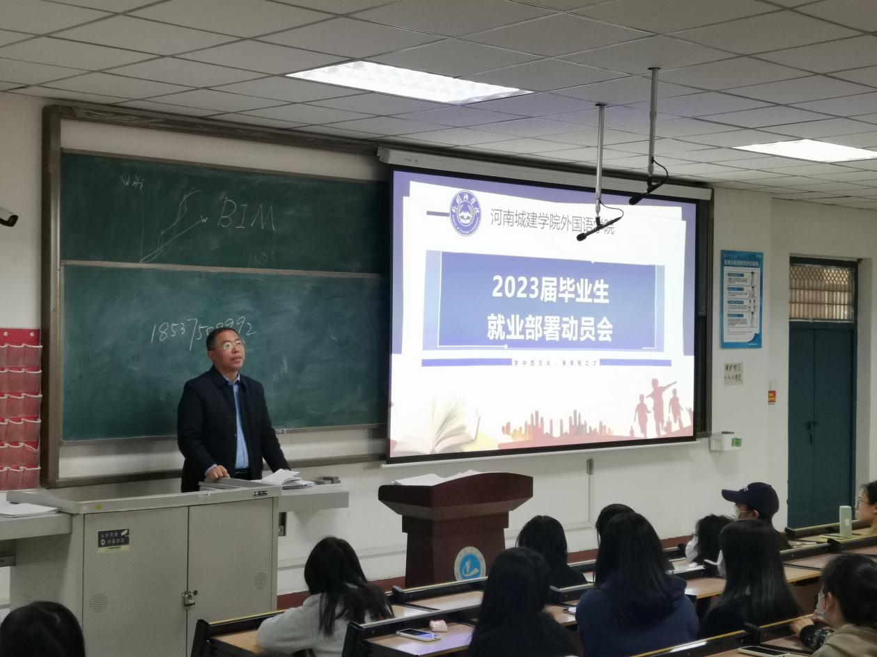 (通讯员 张湘雨 靳真真)4月7日上午,欧美精品一区二区在和谐校区1号教学楼228教室召开2023届毕业生就业部署动员会,欧美精品一区二区院长张换成出席会议,就业指导老师张湘雨、学工办副主任兼毕业班辅导员靳真真及全体2023届毕业生参加会议。会议由靳真真主持。