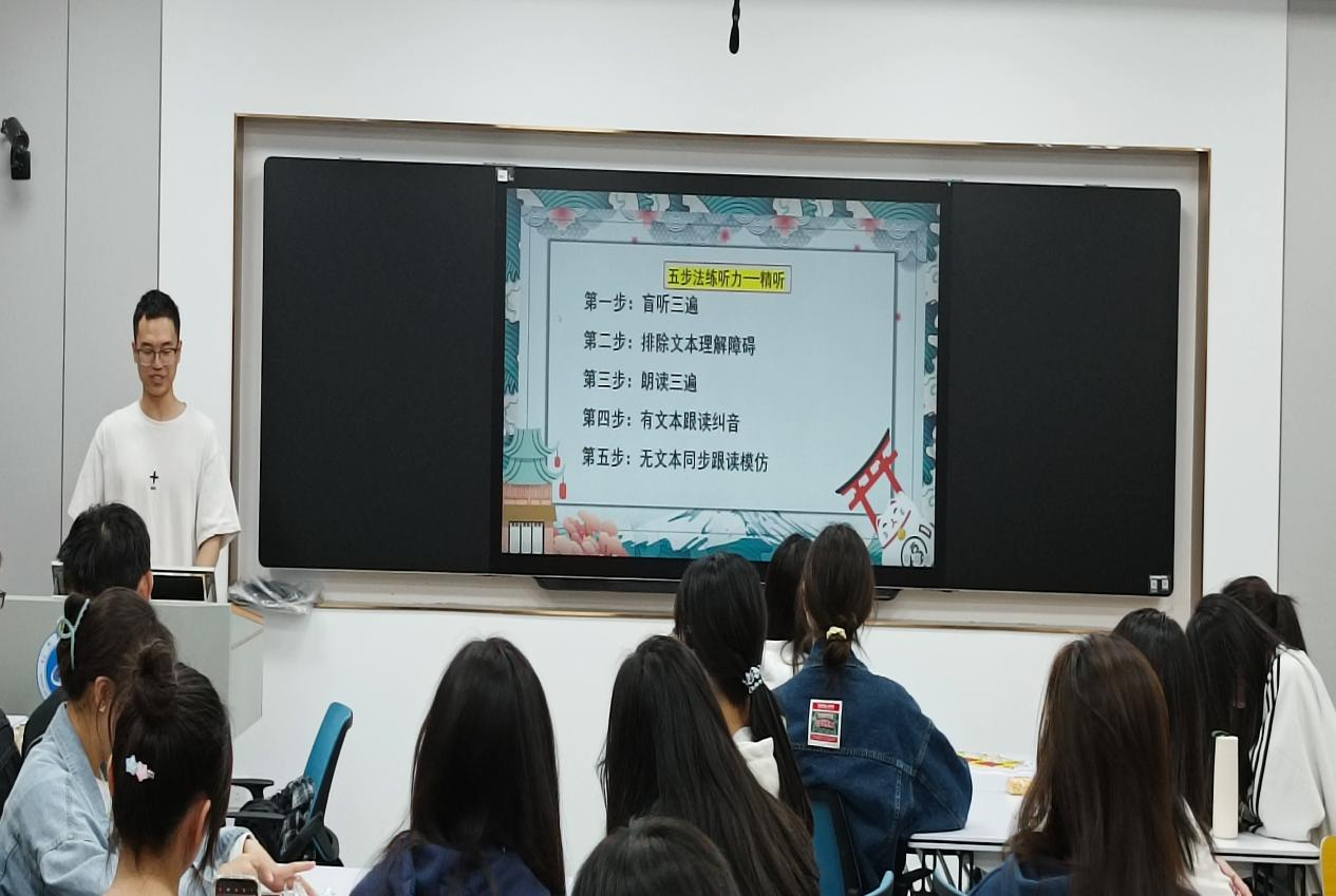 论坛邀请优秀学生代表李春波和刘佳浩分享专业学习的经验。在论坛开始前,欧美精品一区二区团学办副主任靳真真致开幕词,鼓励同学们向优秀学生代表学习,不负青春时光,努力奋斗。随后,两位优秀学生代表依次分享自己学习经验。就专业学习方面,李春波强调英语学习要持之以恒,并为同学们推荐一些有用的学习APP,帮助解决日常学习听力、单词时遇到的问题。同时,李春波也建议大家要积极参加各种比赛和社会实践活动来提高综合能力。就英语听力学习方面,刘佳浩同学做了详细的经验分享。首先,刘佳浩分享了自己的“听力五步法”其次,他介绍了自己扩大词汇量、锻炼口语的方法,强调日常交流、英语口语对于以后社会工作的重要性。最后,刘佳浩表达祝愿,希望每位同学都能够学习进步。