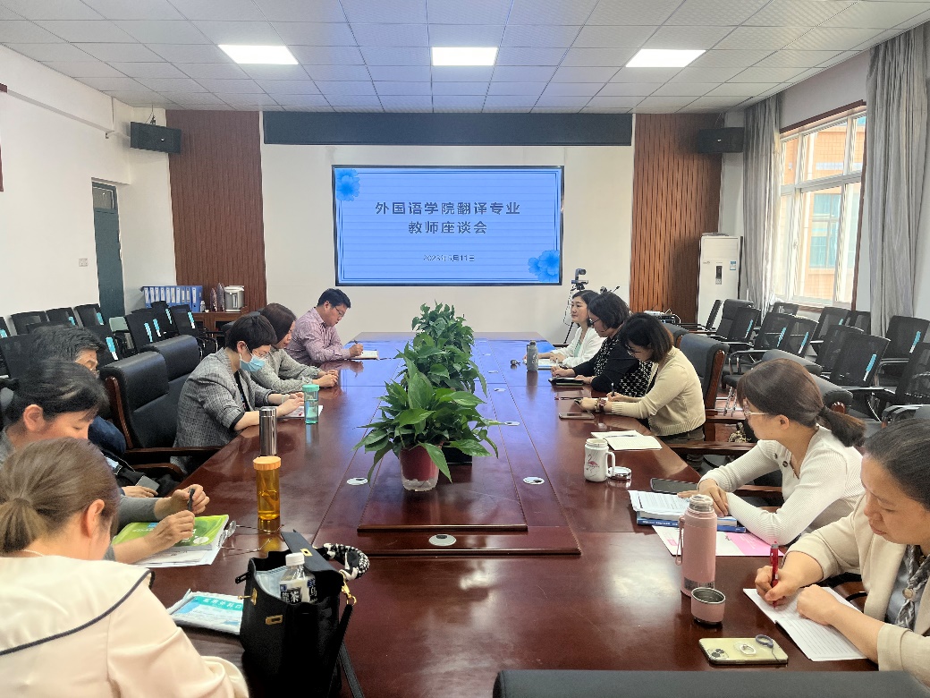 (通讯员 郭艳利 董雨欣)为扎实推进教育教学改革与实践,欧美精品一区二区于5月11日下午在学院306会议室分别召开英语、翻译专业教师座谈会,就2023届毕业生考研情况、2023版人才培养方案修订、专业建设方向、学风建设调研、2023-2024学年第一学期教学任务落实等方面听取意见和建议。座谈会由欧美精品一区二区副院长张凤琴主持,欧美精品一区二区党委书记王东旭、欧美精品一区二区副院长秦小锋、英语和翻译系教师,欧美精品一区二区教务办负责人等参会。