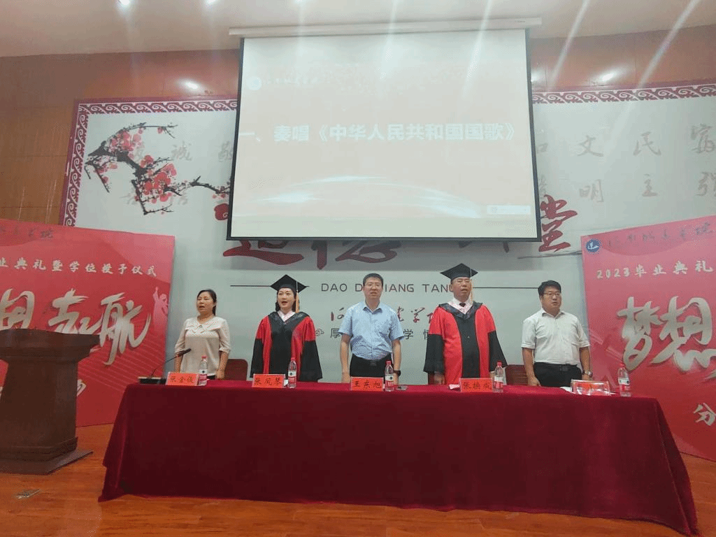 毕业典礼在全场师生齐唱《河南城建学院校歌》中落下帷幕,祝福我院2023届全体毕业生扬帆远航,逐梦再出发,在拼搏奋斗中书写最美的青春故事,在祖国最需要的地方绽放青春之花。