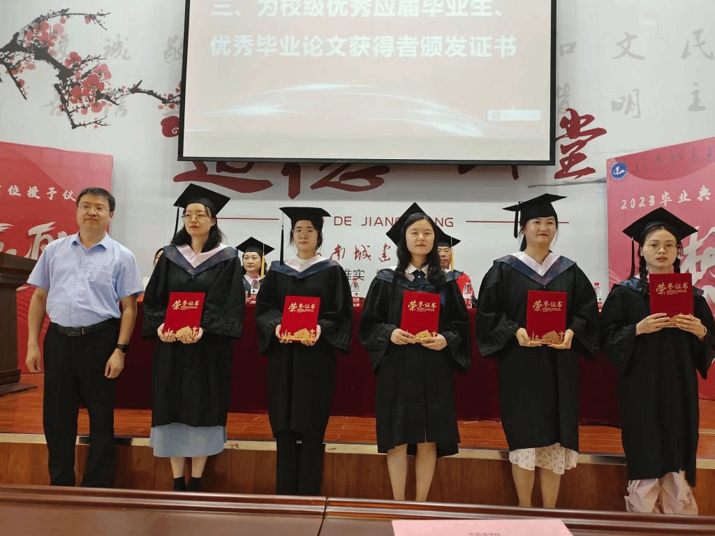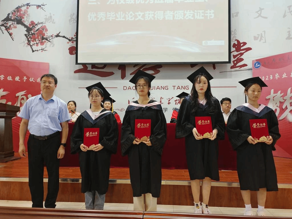 典礼在庄严的国歌声中正式拉开帷幕。学院副院长张凤琴宣读了《关于表彰2023年优秀应届毕业生的决定》和《关于表彰2023届优秀毕业论文的决定》,学院党委书记王东旭为校级优秀毕业生代表、学院优秀论文获得者颁发了荣誉证书。副院长秦小锋宣读了《关于授予2023届毕业生学士学位的决定》,院长张换成、副院长张凤琴共同为205名毕业生颁发学位证书、拨穗并合影留念。