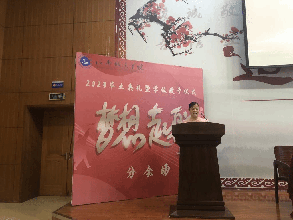 院长张换成致辞,他代表学院向2023届毕业生顺利完成学业表示最热烈的祝贺,同时对毕业生提出三点希望:一是要涵养“先天下之忧而忧”的家国情怀,争当爱党爱国的践行者;二是要勇担“一枝一叶总关情”的为民使命,争当为民服务的实干家;三是要永葆“梅花香自苦寒来”的奋斗姿态,争当时代发展的弄潮儿。