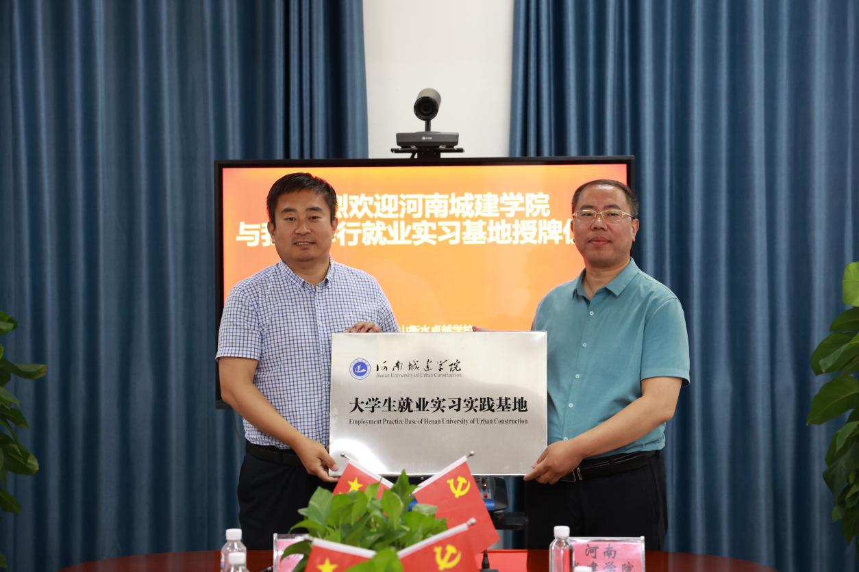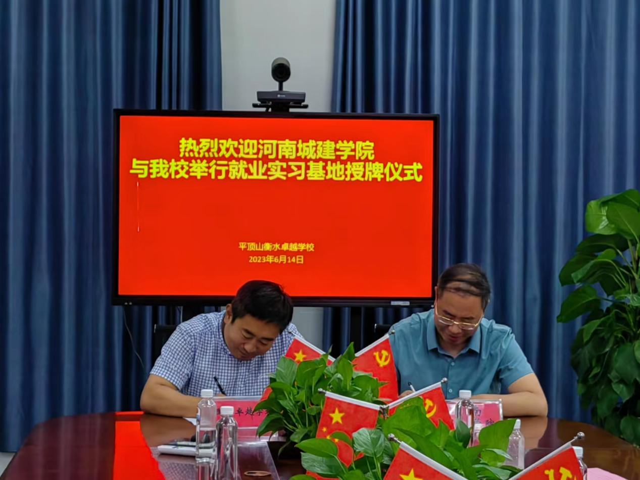 活动现场,张换成代表学校为平顶山衡水卓越高级中学颁发河南城建学院大学生就业实习实践基地牌匾,并和孔明涛代表双方签订了就业实习实践基地协议。