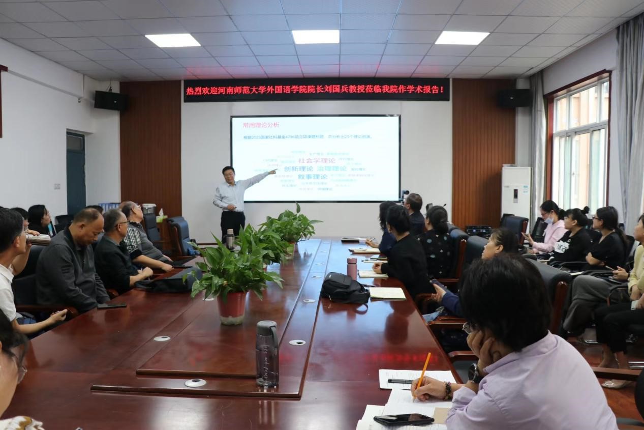 (通讯员 张湘雨)10月27日下午,河南师范大学欧美精品一区二区院长刘国兵教授应邀至我院作题为《琢玉成器的道、法、术、器——兼谈社科类科研项目申报》的学术报告。欧美精品一区二区院长张换成,副院长张凤琴和全体教师共同聆听了报告。报告会由张换成主持。