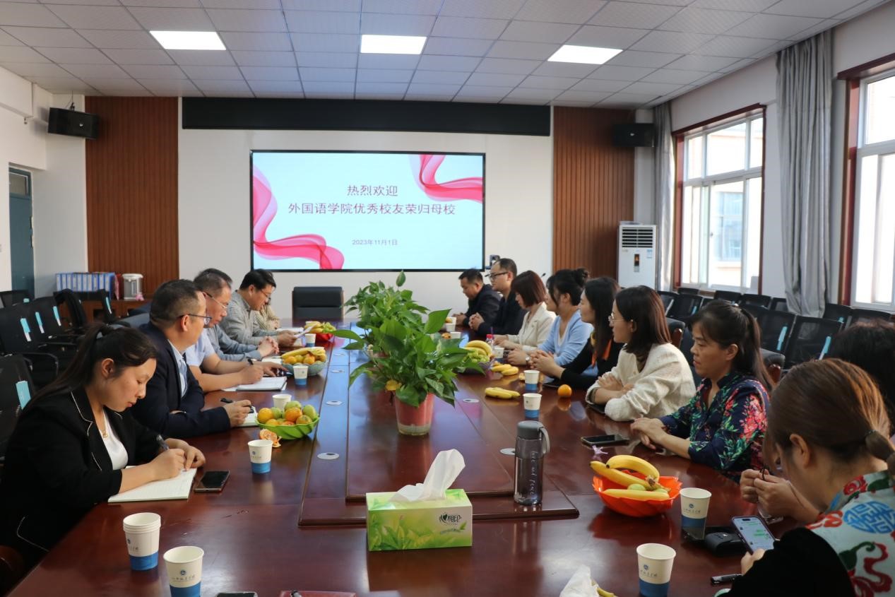 在交流过程中,党委副书记张金俊和副院长张凤琴分别从学生管理和人才培养的角度与校友展开讨论,与会校友根据自身工作经验和体会从加强校企合作、强化口语训练、提升抗压能力与生活自理能力等方面提出了宝贵建议。党委书记王东旭表示,本次返校的校友非常具有行业代表性,其学习和工作奋斗历程非常令人鼓舞,学院将选拔优秀校友组成精神导师团为在校生指引方向。