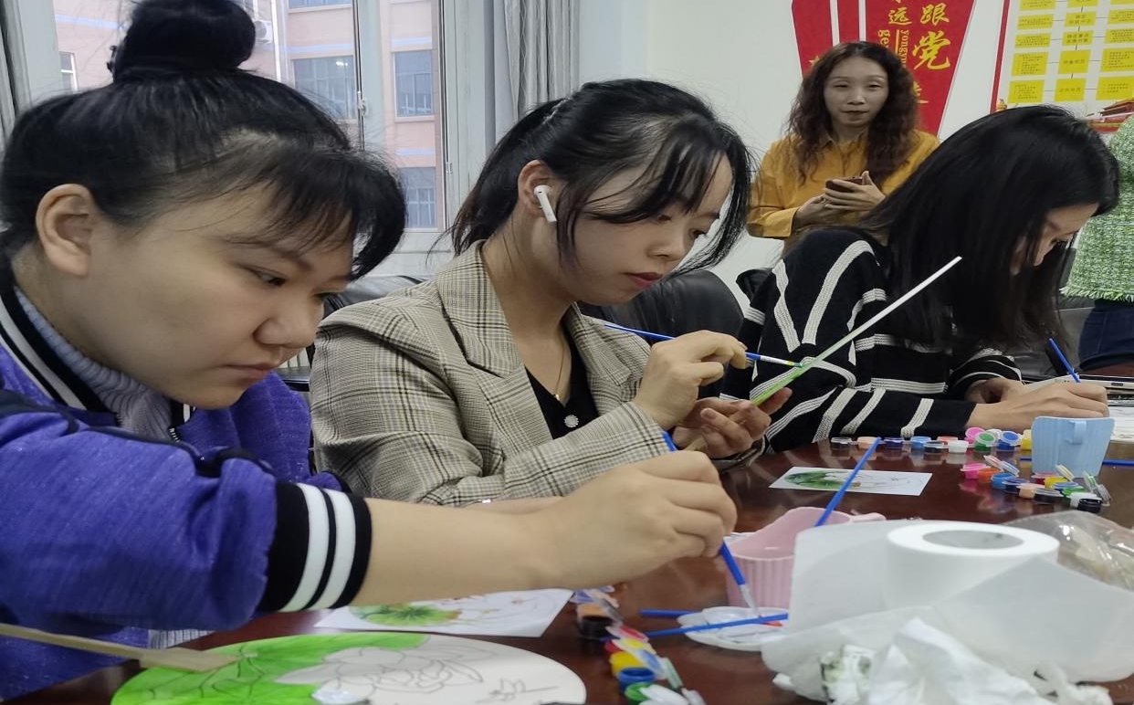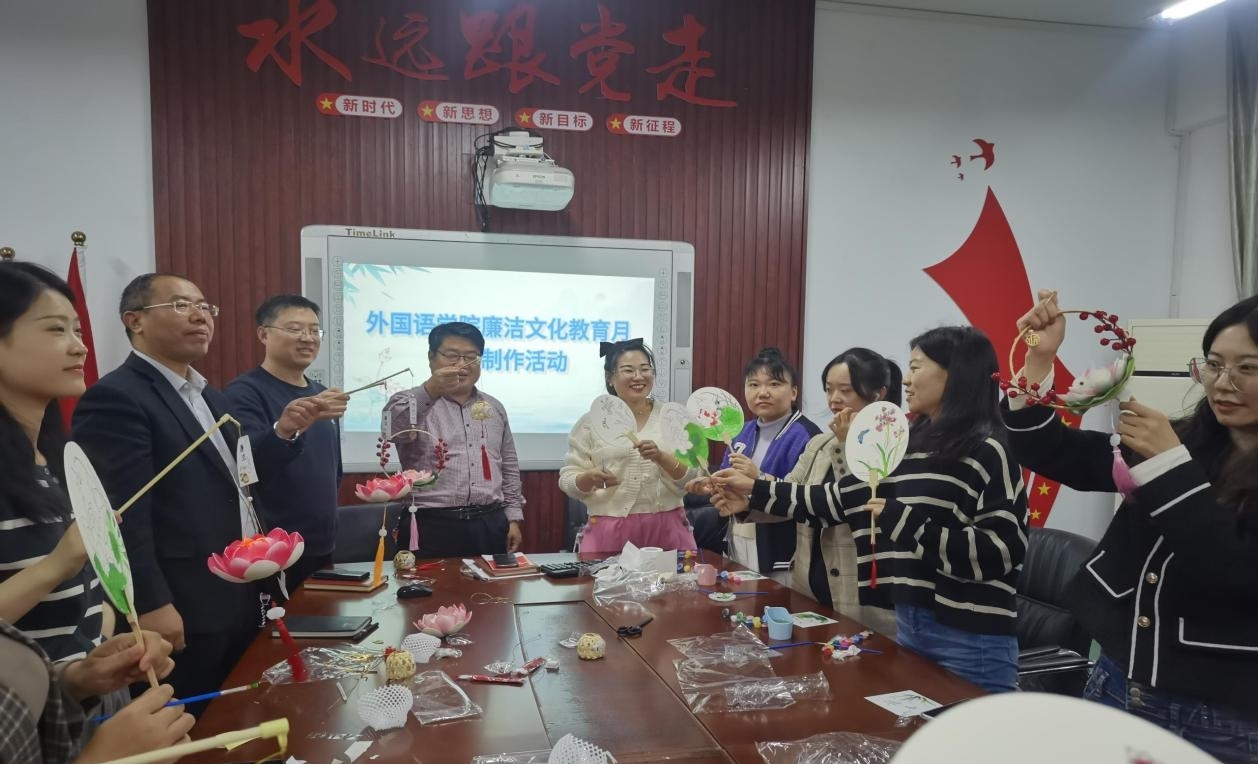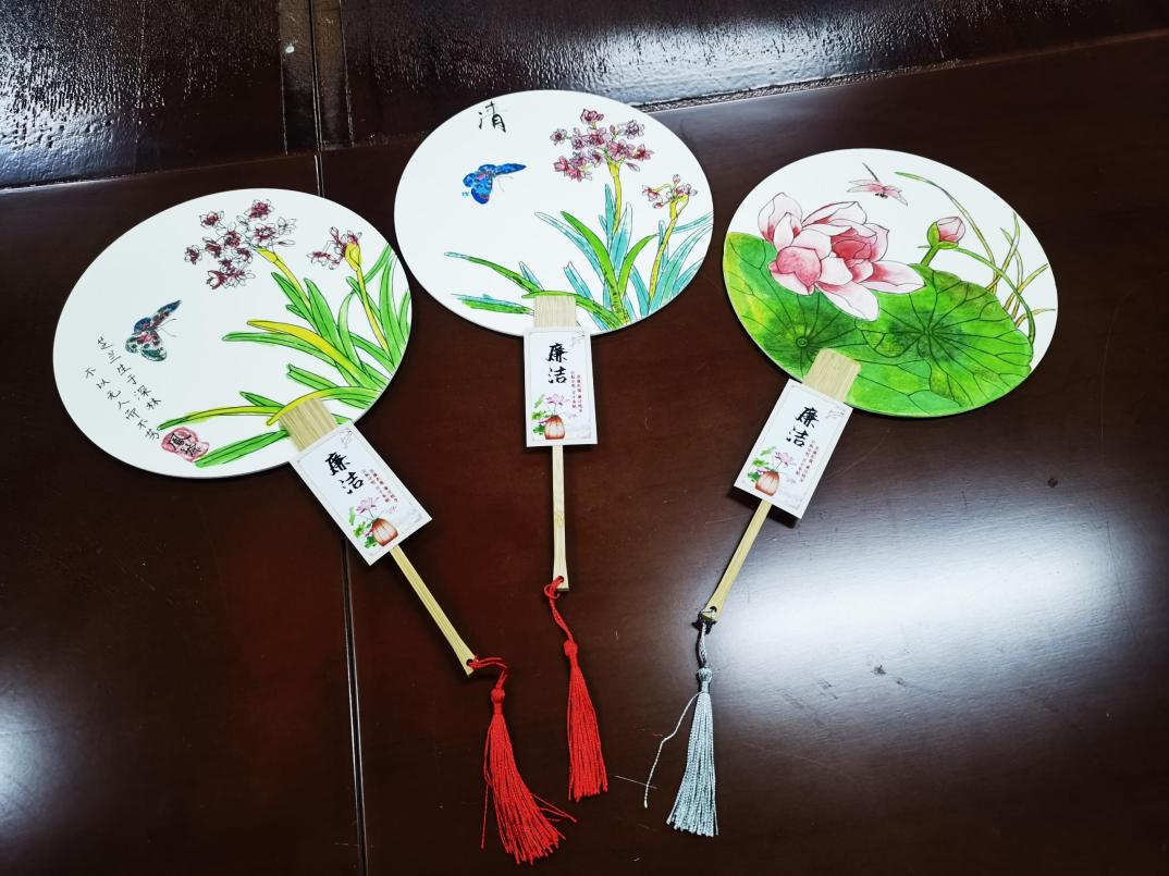 活动现场,教职工们结合廉洁主题,纷纷展示出自己的巧手和创意,有的拿出画笔、调色盘、颜料等绘画用品,耐心细致描绘“莲”洁团扇,在一笔一画中感受清廉之美,莲花与兰花的扇面寓意着廉洁清正与高雅淡泊;有的亲手编制莲花灯、竹雅灯,象征着廉洁之灯长明,竹雅之德常修。
