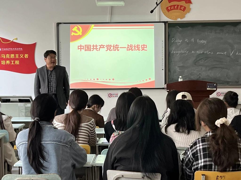秦小锋从学习统一战线史的重要意义、统一战线的发展历程和习近平总书记关于统一战线的思想三个方面进行讲解。他指出,统一战线不仅是党和国家事业发展的重要法宝,更是团结一切可以团结的力量、推动国家进步的重要途径。他强调,青年学生在学习中国统一战线史的过程中,应当学会与他人合作、共同解决问题,以应对未来学习和工作中可能面临的挑战。