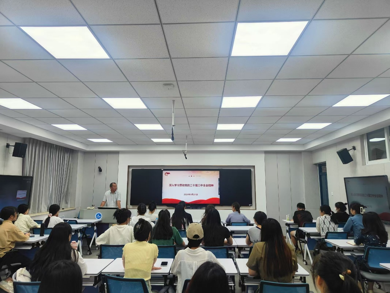 9月27日下午,在和谐校区1#317教室欧美精品一区二区院长张换成以“深入学习贯彻党的二十届三中全会精神”为题为全院学生党员作专题党课暨形势与政策课。