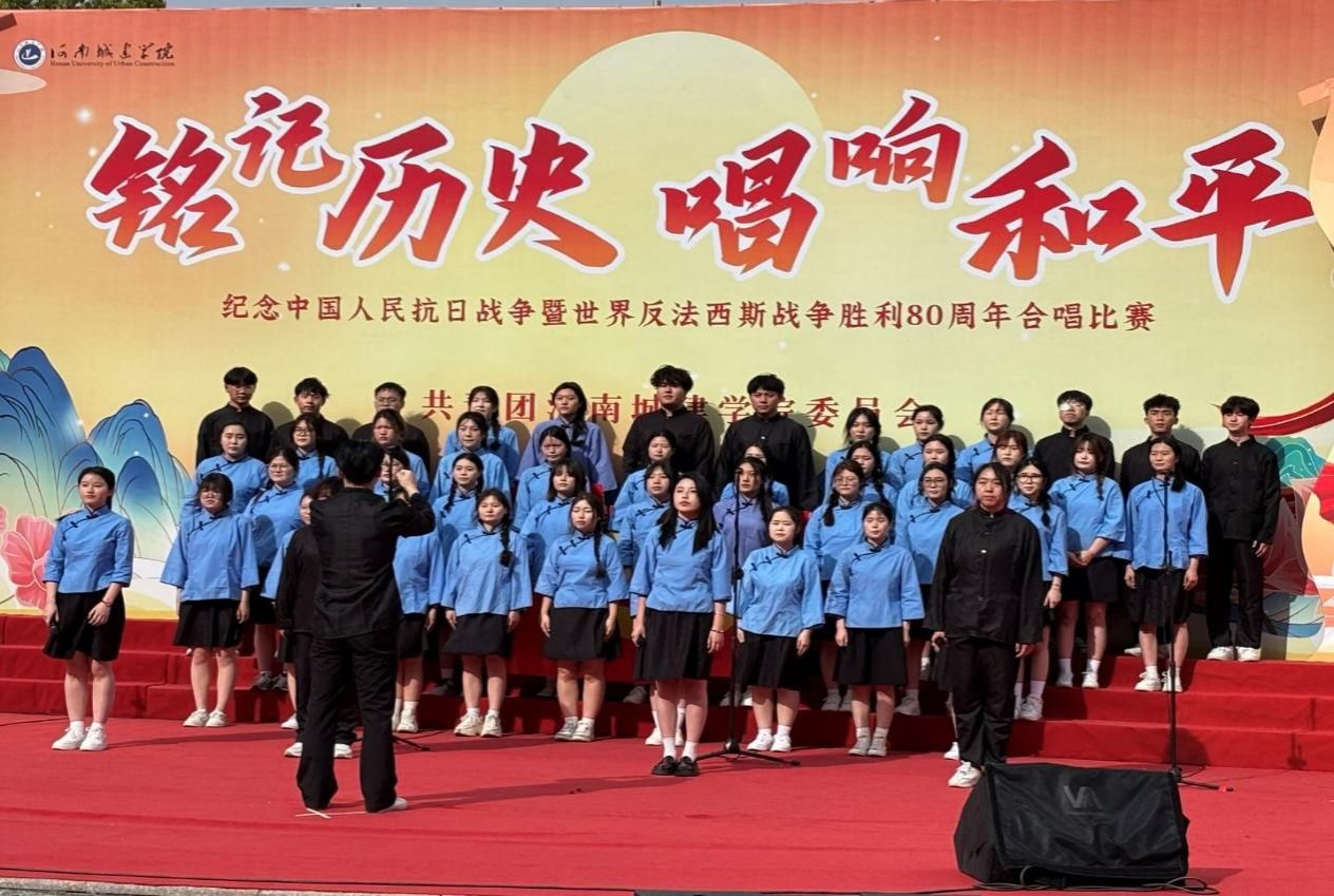 为进一步弘扬爱国主义精神,深切缅怀革命先烈的丰功伟绩,4月15日,河南城建学院纪念中国人民抗日战争暨世界反法西斯战争胜利80周年合唱比赛在龙翔校区文化广场成功举办。此次比赛由共青团河南城建学院委员会承办,校党委、党委学生工作部、平顶山市文化艺术馆等相关职能部门领导担任评委以及各学院党委书记、副书记,各学院团委书记、辅导员、师生代表3000余人共同参与了本次合唱比赛。