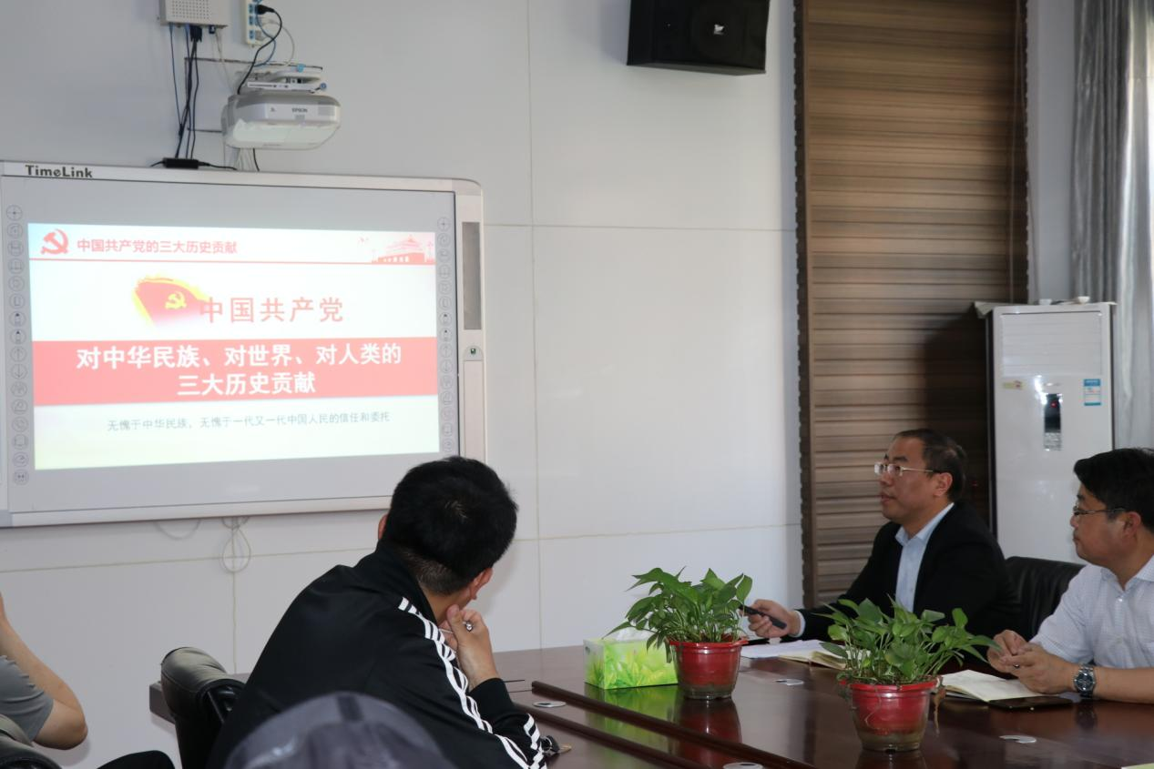 张换成从中国共产党的三大历史贡献、党的历史给我们的“三大启示”、如何理解和坚持“不忘初心 继续前进”、我们应如何“不忘初心 永葆本色”四个方面进行解读,号召广大教师要始终坚持学习、强化能力、追求一流、严于修身,继续弘扬共产党人求真务实、为民服务和坚韧不拔的奋斗精神,敢于尝试、勇于创新,永葆共产党员先进性。