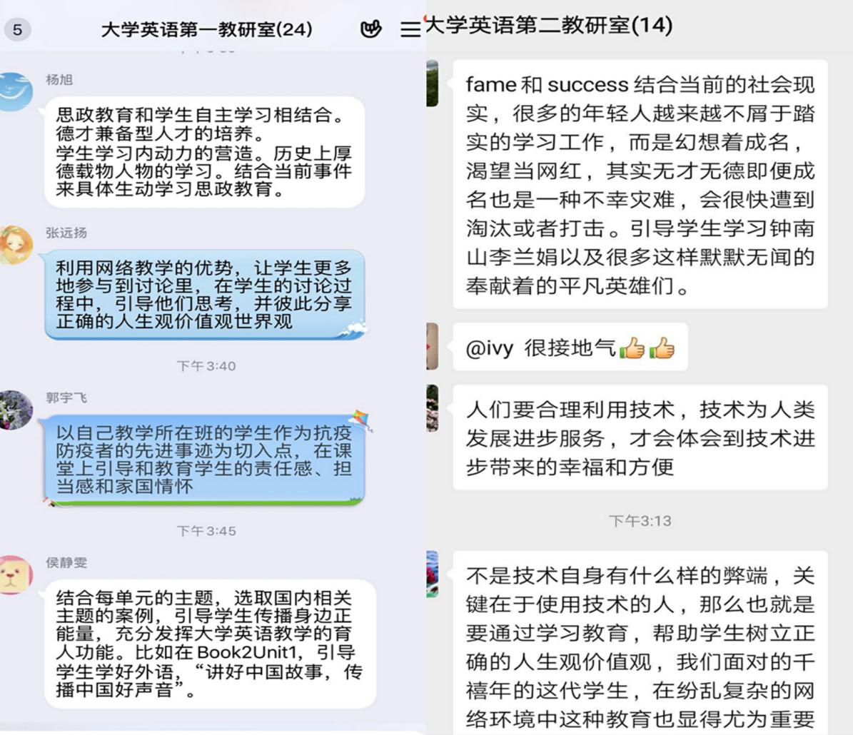 在发言中,大家纷纷表示,要充分发挥课堂教学主渠道作用,把习近平总书记重要回信精神融入课程思政教学改革,进一步落实好立德树人根本任务,引导学生树立正确的世界观、人生观和价值观,使学生坚定“四个自信”,将爱国主义情怀厚植于心,真正地把教书和育人结合起来,培养出专业技术过硬,思想道德高尚的新时代大学生。