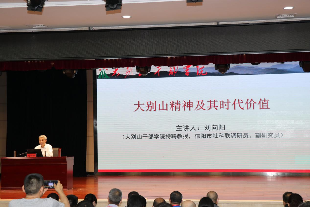 在课堂教学中,信阳市社科联原调研员、副主席、副研究员刘向阳以“大别山精神及其时代价值”为题作专题报告,他从大别山辉煌的革命历史培育和造就了大别山精神、大别山精神及其内涵、大别山精神的当代价值与启示三个方面,回顾了英雄大别山在新文化运动、建党初期、大革命时期、土地革命时期、红军长征时期、抗日战争时期、解放战争时期的28年红旗不倒的革命斗争历史。