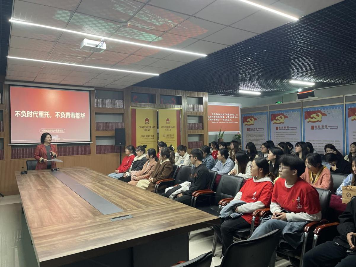 随后,王宏书记对全体学生党员提出了殷切期望,她指出,作为新时代的青年,要深刻认识到自己身上承载着继续推动社会进步、实现中华民族伟大复兴的历史责任,要以马克思主义思想为指引,牢记历史使命,脚踏实地,既要理解和传承思想精髓,也要在实际行动中彰显青春风采。学生党员也纷纷上台分享自己的学习收获和心得体会: