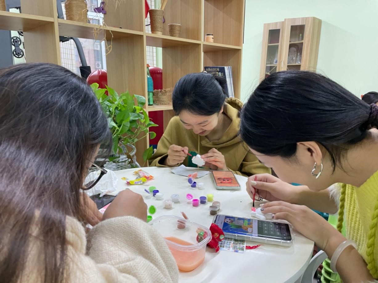 通过这次活动,同学们感受到了DIY的乐趣,在绘画的过程中释放了自己的压力,暂时抛却了现实的烦恼,最后看到自己的成品,心中充盈着满足和充实感。在这个美好的下午时光,所有参与进来的同学都享受着片刻的清净与欢心,他们亲手绘画的的陶瓷娃娃也承载着今日份的快乐。