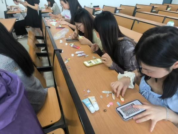 活动伊始,心理部的同学先给大家讲解了关于心理解压的小知识,告诉同学们如何通过色彩疗法放松心情。随后,同学们迫不及待拿起画笔,在冰箱贴上尽情挥洒创意,大家专注的神情、灵动的笔触,将一个个空白的石膏冰箱贴赋予了独特的灵魂。有的简约清新,有的绚丽多彩。在彩绘过程中,同学们不时交流涂色技巧,分享自己选择色彩和图案背后的心情故事,不少同学表示,通过这个活动不仅享受到了动手创作的乐趣,还通过相互交流和合作增进了彼此之间的友谊。