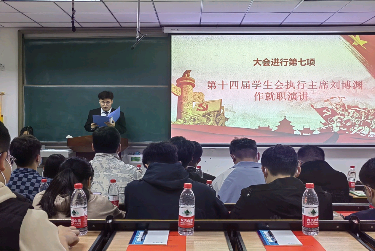 国歌嘹亮,为大会拉开序幕。欧美精品一区二区党委副书记胡思博寄托殷切希望,为大会致开幕词,对上一届学生会的工作表示充分肯定,对新一届学生会成员提出期望,并为第十三届学生会优秀主席、主任团颁发聘书、合影留念。随后,第十三届学生会主席王权和第十四届学生会执行主席刘博渊分别作述职报告和就职演讲。辅导员老师于瑞雪与第十四届主席团、主任团成员合影留念,辅导员老师杨玲玲为新、老生交接仪式授旗。最后,团学办副主任靳真真老师对新一届学生会的工作提出要求、作出展望,希望新一届学生会不负众望,把学院的学生会工作推向一个新的高度。